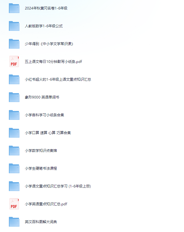 这份巨无霸合集精选3500份小学付费优质资料,涵盖语文、数学、英语、科学、艺术等多学科,包括同步教材讲解、专项习题、思维导图、阅读素材和趣味测试。适合1-6年级宝贝,系统提升综合能力,激发学习兴趣,避免知识断层,家长轻松指导成长!电子版一键下载,随时随地高效学习。