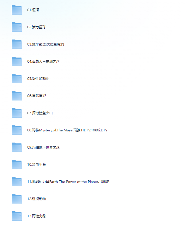 这份海量套装精选100部经典纪录片(总容量555GB,高清视频资源),涵盖自然探索、历史文化、科技发明、动物世界、环境保护等多元主题,如《地球脉动》《人类星球》《蓝色星球》等名作。结合生动画面、深度解说和启发性故事,帮助6-15岁孩子轻松拓展知识面,提升观察力、思考力和人文素养,避免屏幕娱乐低质化,家长温馨陪伴宝贝发现世界奥秘!电子版高清下载,随时观看超震撼。